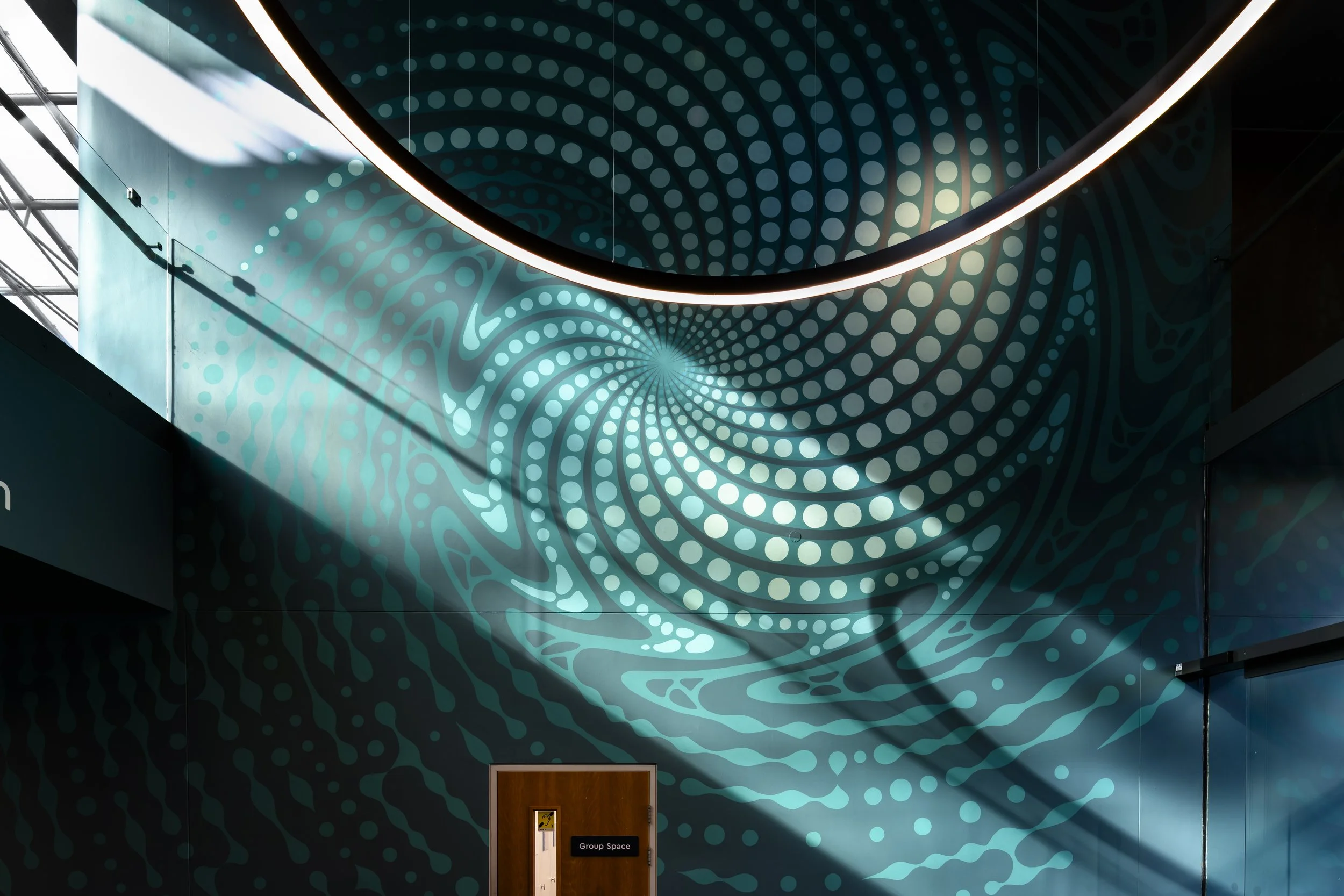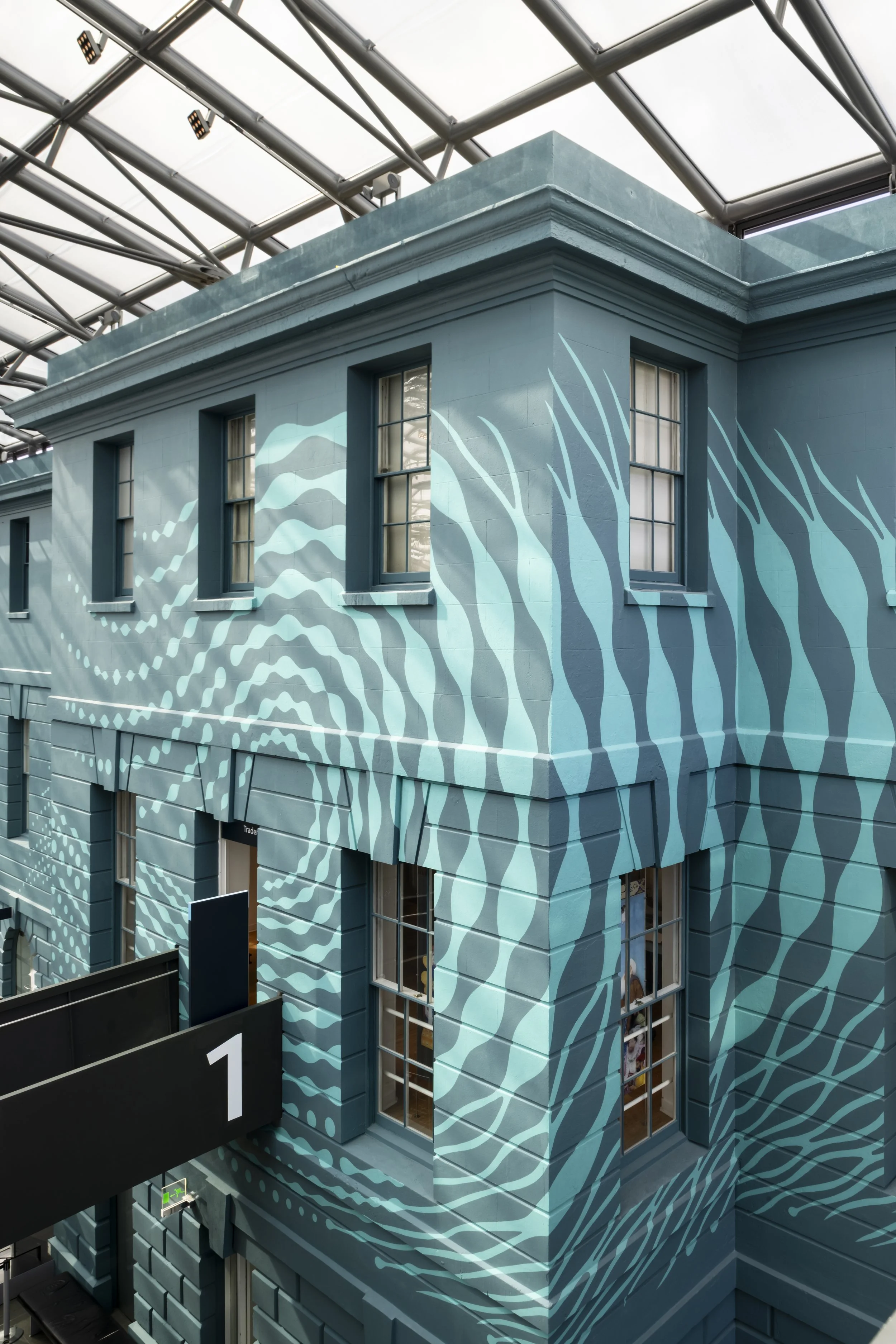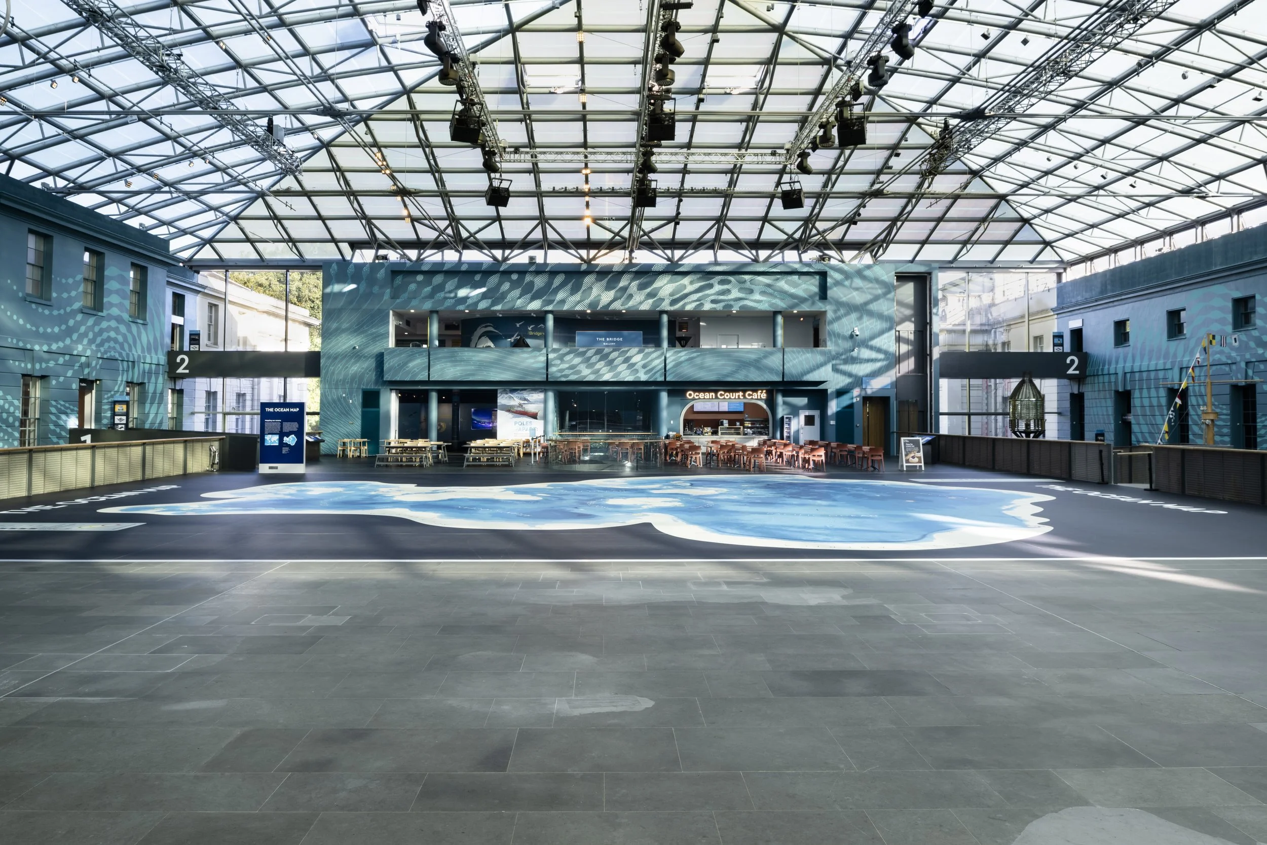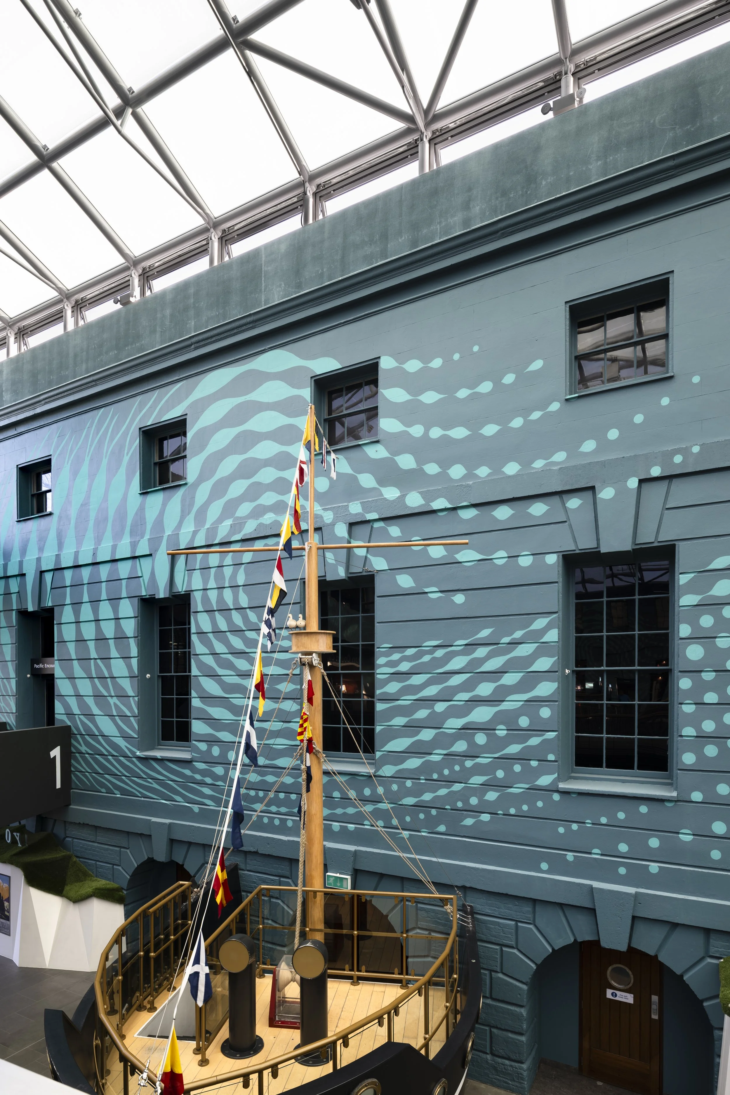 A series of hand-painted murals at the National Maritime Museum, Greenwich. The murals were part of the newly redeveloped Ocean Court and aimed to make it an immersive space for visitors to explore.