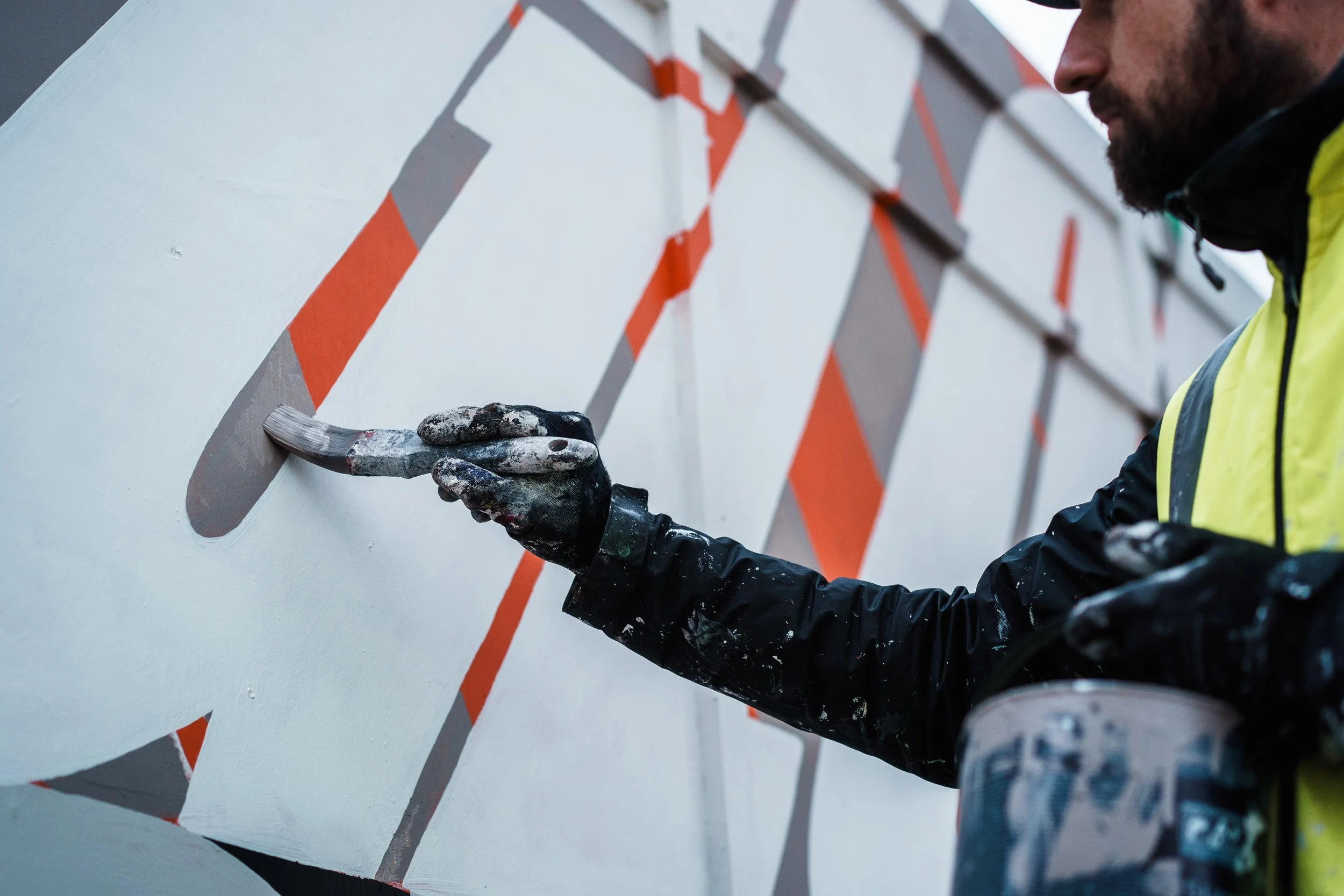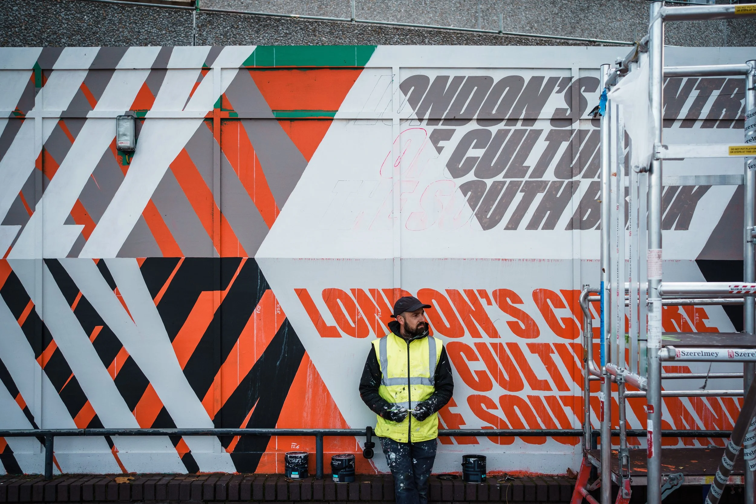 Project 76 Southbank 35m long mural on London’s Southbank for the redevelopment of the former IBM building on the riverside. Commissioned by Saentys. Overview Photography by Oh Brother.Paint supplied by Paint & Paper Library.